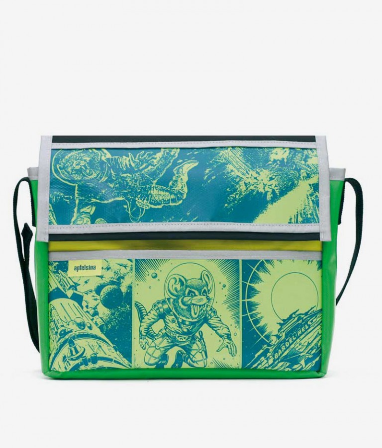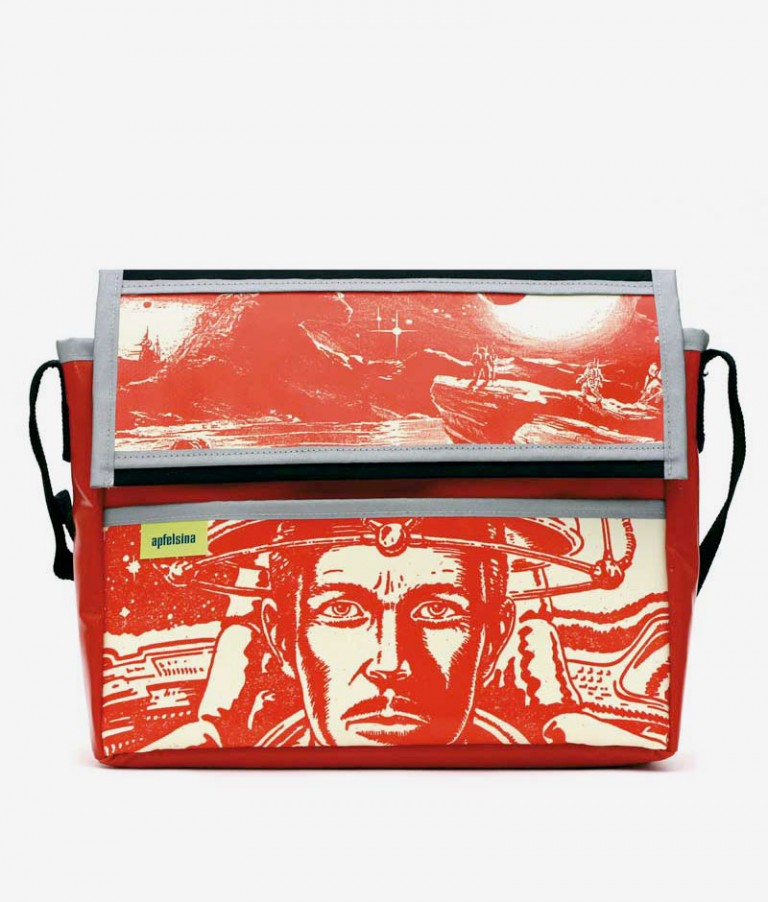 Aus den Zeichnungen, mit denen die Perry-Rhodan-Hefte illustriert sind, hat Apfelsina eine exklusive Kollektion geschaffen. Ausschnitte aus Originalmotiven der größten Science-Fiction-Serie der Welt wurden farbig gestaltet und zu extravaganten Taschen, Gürteln und T-Shirts verarbeitet.