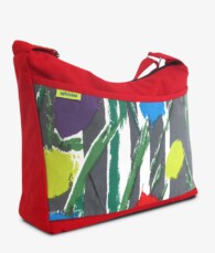 Das Frontteil der Umhängetasche „Lucia Silla“ besteht aus einem ehemaligen Vorhang aus den 50er Jahren.