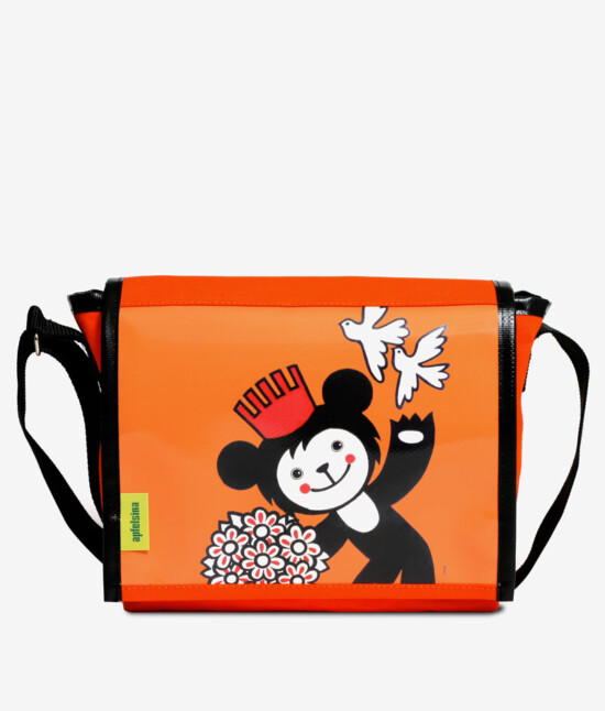 Für das Frontteil dieses Apfelsina-Originals wurde ein Teil einer Luftmatratze aus den 60er Jahren verwendet.